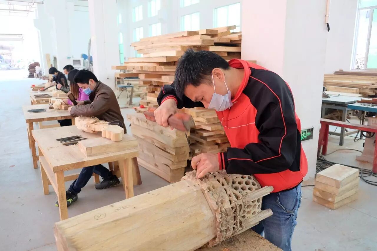 姚土龙告诉记者,木雕加工生产以传统加机器方式进行,传统工艺占主导,特别是细处处理,全靠师傅的技艺和经验。因此,有经验的老师傅是厂里最宝贵的“财富”。现在厂里100多人中,大多是有着十几年从业经验的师傅,在他们的传帮带下,一批批年青人也开始拿起凿子、刻刀,传承这门技艺。